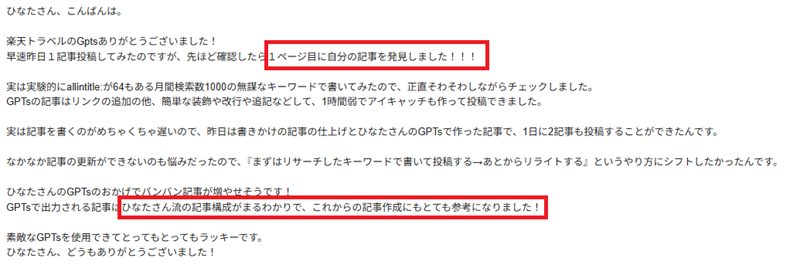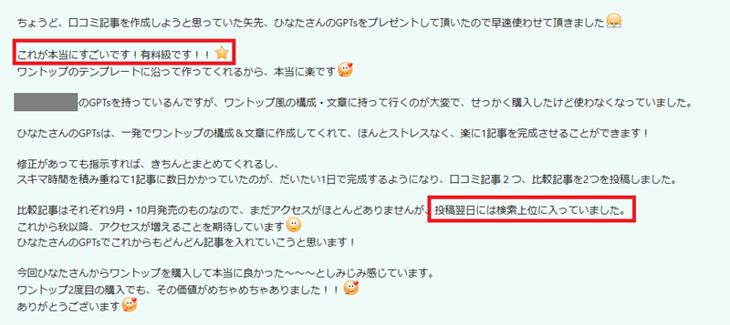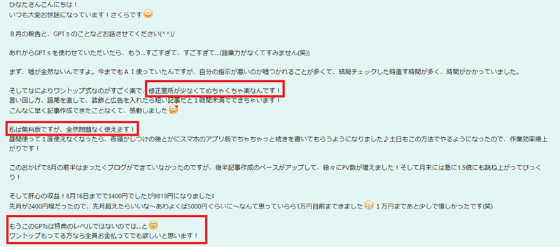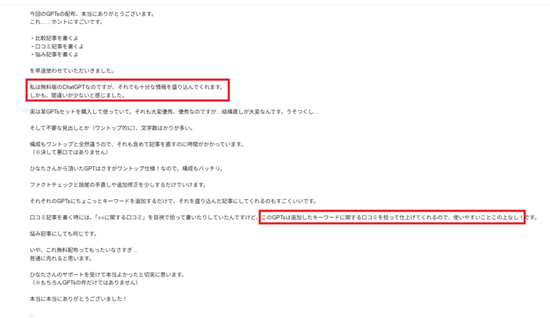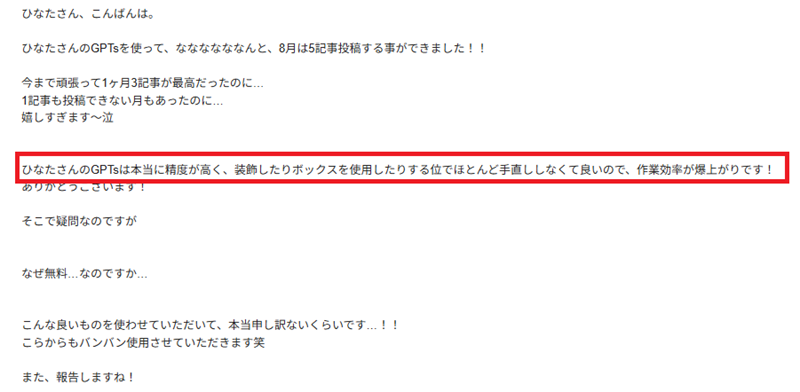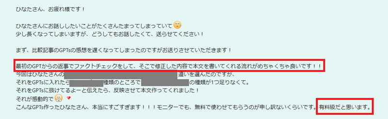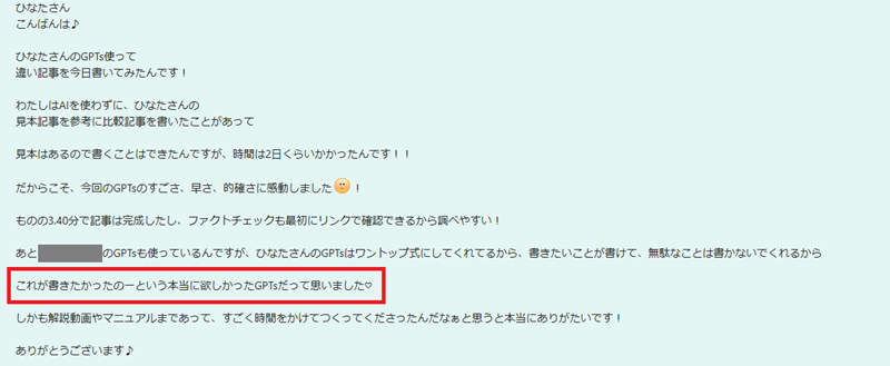 「本当に欲しかったGPTs!」「書きたいことが書けて無駄なことは書かないでいてくれる」など嬉しい感想をいただいています♪