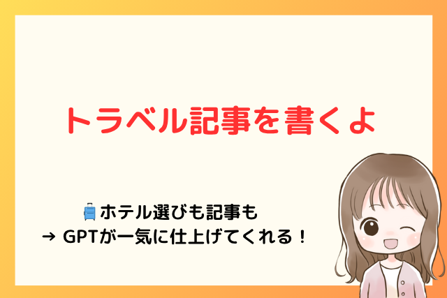 こんな悩みを解決するために作った、トラベル記事を書くよGPTsでは、検索者が知りたい条件にあったホテルだけを紹介する記事がサクッと書けちゃいます!