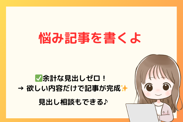 👉 指定した見出しだけで記事を作成。余計な見出しはゼロ!見出しの相談もできる♪