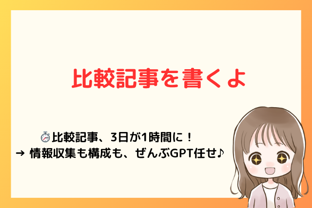 長いと3日かかった比較記事が、1時間もかからずに作成することができちゃいます!